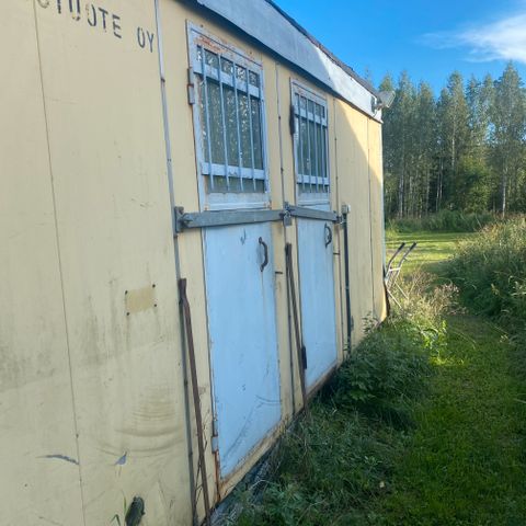 Lahdessa 1kpl 9x3m parakki. Kahteen huoneeseen jaettu, toisella kyljellä ovi. Toiseen kylkeen rakennettu kuitubetoni-seinä.