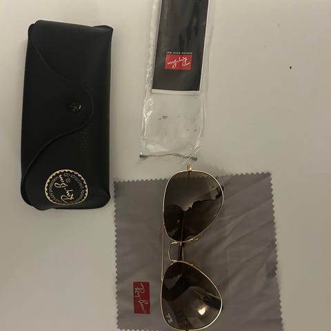 Raybanin mustat aviator malliset aurinkolasit. Vähän käytetty ja ollut tarpeettomana kaapissa. Instumentariumista ostettu. Mukaan aurinkolasit ja kotelo. Liina on valitettavasti kadonnut.