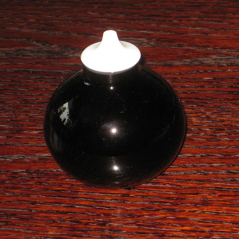 Käyttämätön kynttilälyhty. Petrolin sininen alusta ja lasinen kulho.