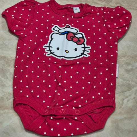 H&M:n Hello Kitty - setti (paita ja farkut) kokoa 62-68. Paidassa painonapit niskassa. Farkuissa vetoketju ja painonappi. Vyötäröllä solmittava kangasvyö. Etutaskut sekä läpälliset takataskut painonapein. Siisti käytetty kunto.