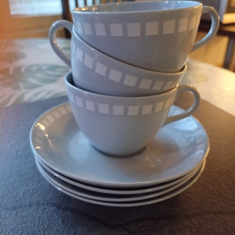 10 kahvikuppia (yhdessä pieni halkeama - ktso kuva), 9 kupin alustaa,