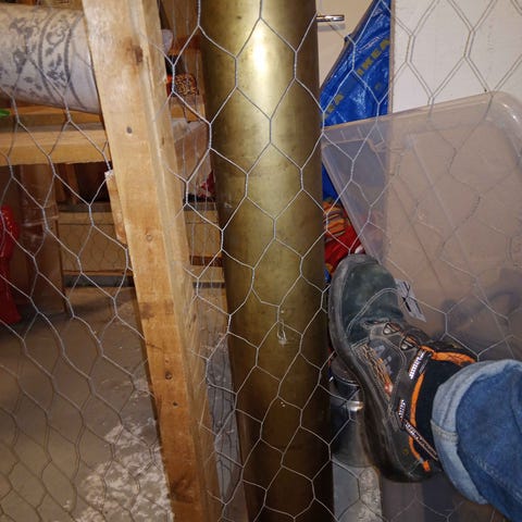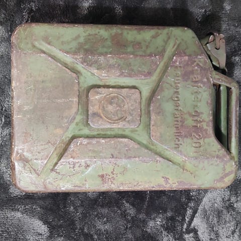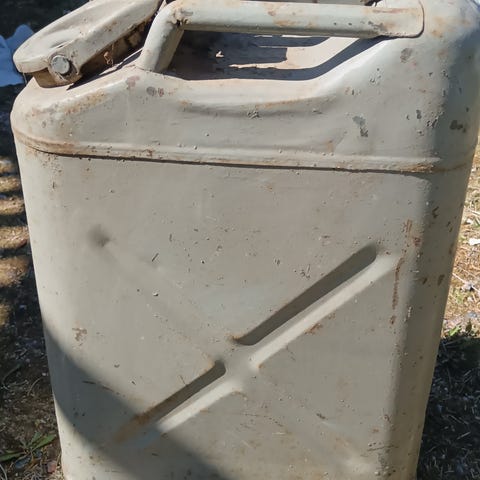 metallinen jerrykannu vedelle. malli: u.s. w cavalier 44.tilavuus n.5 us gallonaa. kunto tyydyttävä.