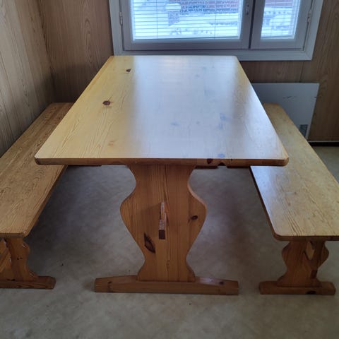 - pöydän kansi ja penkkien pinnat lakattu