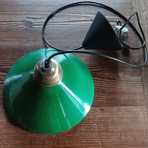lamppu, valaisin, vihreä valaisin, suutarinvalaisin, suutarilamppu, kattolamppu, ikkunavalaisin, vanhanaikainen, vanhannäköinen, retro, vintage, pieni kattovalaisin, outlet, Keski-Suomi, Keuruu