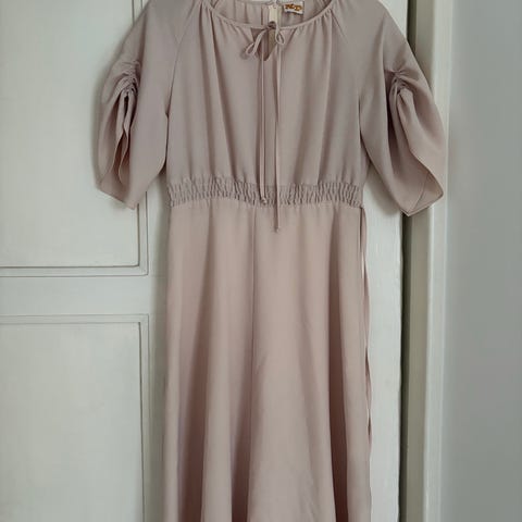 Valkoinen taskullinen Bik Bok paitamekko, 100 % viskoosia, koko S. Kaikai 54 cm.