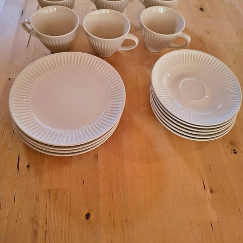 Ostan Pentikin Vekki-sarjan kahvikuppien aluslautasia 6 kpl. Tarjoa lautasen mitan kanssa.