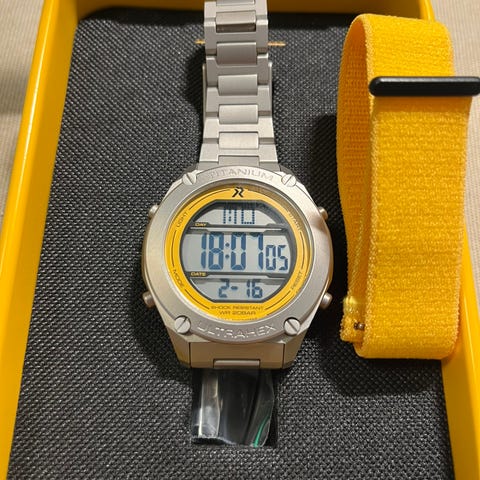 TW Steel miesten rannekello. Kellotaulussa on suuret valkoiset numerot ja indeksit sekä punaiset osoittimet lisätoiminnoille.