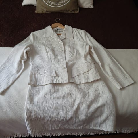 AnnDelire Paris naisten juhlajakkupuku, väri oranssi, materiaali polyesteri, koko 40. Takissa on koristeelliset kukka-aiheiset yksityiskohdat ja napitus edessä. Materiaali on mukava ja tyylikäs, sopii sekä arkeen että juhlaan. Hameessa on vuori. Takin pit. 75 cm, Hihan pit. 61 cm, Lev, kainalo-kainalo 58 cm. Hamen pit. 72,5 cm, 78,5