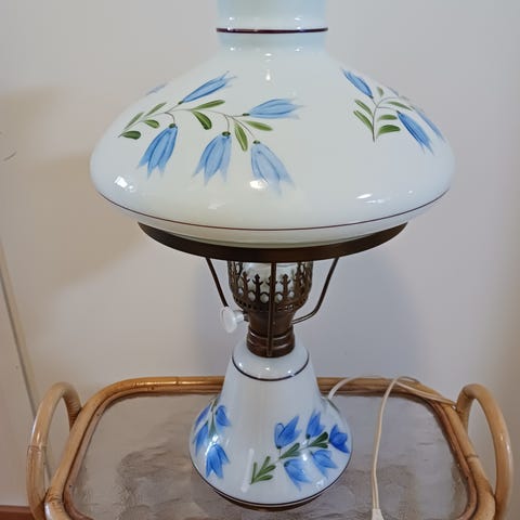 Myydään Vintage pöytä valaisin, korkeus 30 cm ja halkaisija 14 cm. Hieman kartiomainen.