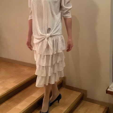 Suojanen Oy:n Missel -tuotemerkille valmistama 70-luvulta. Kermanvalkoinen. Mekossa vuori. Jakussa ei vuorta. Koiratalous. Voin postittaa, ostaja maksaa postituskulut.