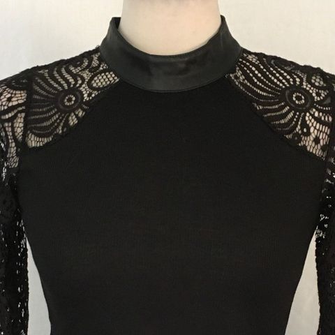 Uusi kaunis musta paita jossa sifonkinen osio ja pitsiset hihat jne. Koko S.