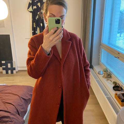 Takki on mielestäni sopiva kevät- tai syksytakiksi. Miksei mene talvellakin, kun alle laittaa ohuen neulepaidan.