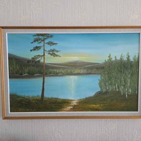 Kuvan mukainen maisemataulu. Koko 85 x 75 cm.