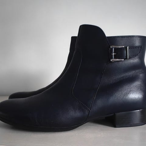 “Mustat nilkkurit lämpimällä vuorella, joka on hieman kulunut kärjestä. Matalalla korolla, mukavat jalassa. Materiaali aitoa nahkaa. Lämpimät ja sopivat hyvin syksyyn ja talveen. Hyväkuntoiset. Koko 38.