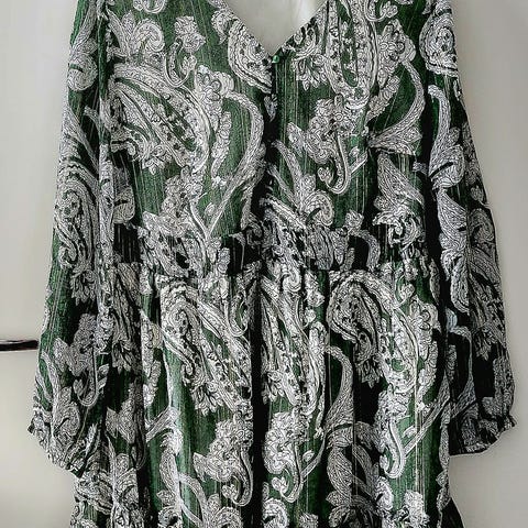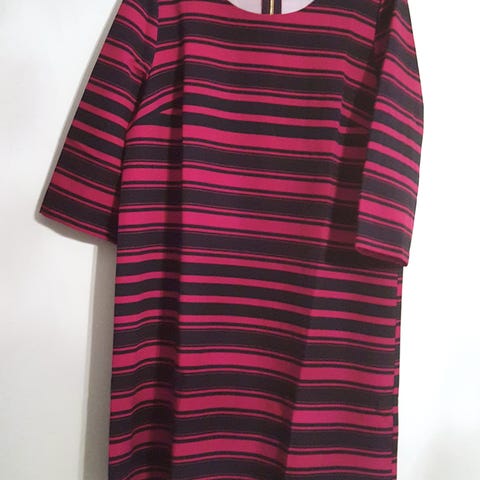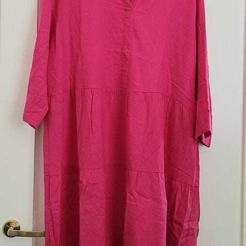 Kangas on joustavaa. Kuljetus Joensuuhun onnistuu. Mekon merkki on Rene.