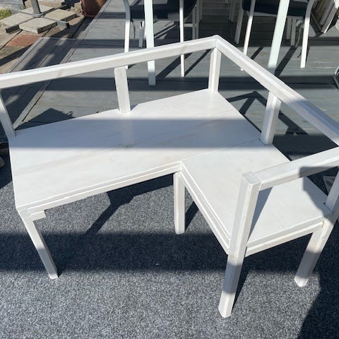 Pehmustettu puutuoli. Istuinkorkeus noin 47cm. 12 euroa.