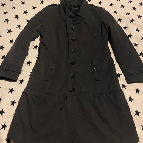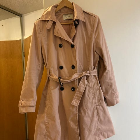 Kuvan käyttämätön trenssi-takki kevääseen. Laput vielä paikoillaan. Kokomerkintä XL. Mitat: kai-kai 56cm, olka-helma 86cm. OVH:100€.