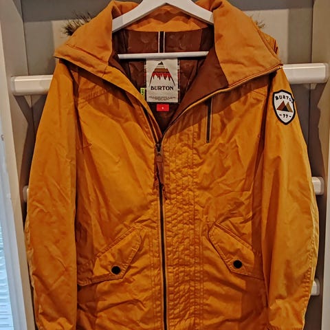 Naisten musta Burtonin kevyttoppatakki. Koko XS. Helmassa kiristysmahdollisuus. Sisäpuolella nepparein suljettava lumisuoja. Edessä kaksi vetoketjutaskua. Sisällä tarranauhalla suljettava tasku. Hihojen suita voi säätää tarranauhalla. Kiinteä huppu, jossa kiristysmahdollisuus.