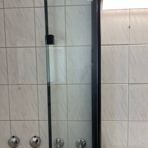Pakkauksessaan oleva tarpeettomaksi jäänyt Hietakari levennysprofiili kiinteälle suihkuseinälle. Väri harmaa (alumiininen)