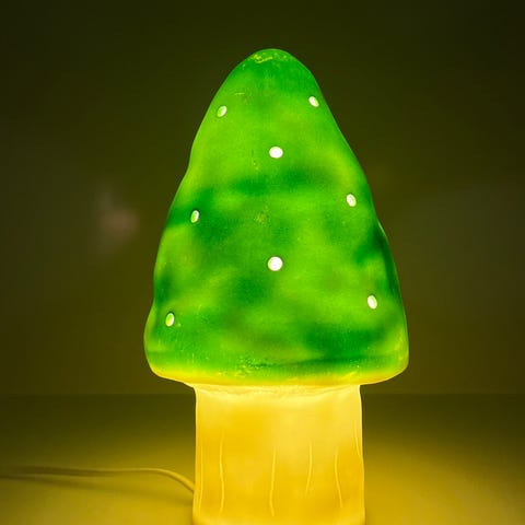 Lastenhuoneen "sininen kani jolla rillit" yövalo jossa vatsassa hipaisukytkin valon kirkkaudelle.