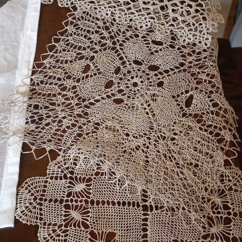 Myyn kuvanmukaiset ruskeat pitsiliinat. Soikean korkeus noin 32cm leveimmältä kohtaa ja leveys noin 46 cm . Pikkuliinan halkaisija on noin 20cm.Valitettavasti liinat ovat nyt rypistyneet tuolla muuttolaatikossa mutta silittämällä ne saa muotoiltua. Hinnan lisäksi postikulut.
