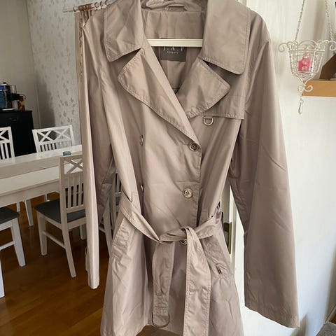 Siisti ja hyväkuntoinen vähän pidetty trenssi. Väreinä: musta/valkoinen/harmaa. Kokomerkintä 44. Mitat: kai-kai 61cm, olka-helma 95cm.