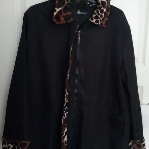Torstain takki, vähän käytetty, kai-kai 62 cm, pituus 77 cm, hupussa vuorena sama kangas kuin kauluksessa muualla silkki- ja verkkokangas, helmassa kiristysnyöri, selkäpuolelta sisäänotot poistettu (ei näy jälkiä poistosta)