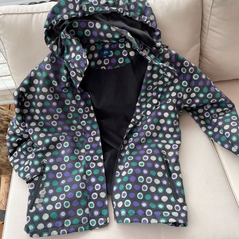 Vähän käytetty, kaunis, rento, kitinvärinen hupputakki, hihansuut voi kääriä haluttuun mittaan, vyötäröllä ja helmassa kiristys, silkkivuori edessä ja hihoissa, verkkovuori hupussa ja selässä, kai-kai-mitta 62 cm, pituus 77 cm