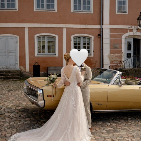 Upea yhdet häät juhlinut Atelje Katariinsn Sis Idman Chanel -häämekko. Laahus sateisena hääpäivänä noin 10cm matkalta siten likaantunut, ettei pesulassa saatu puhtaaksi, joten laahusta suosittelisin tämän verran lyhentämään ompelijalla. Laahus muutenkin hyvin pitkä, joten tästä tuskin haittaa on. Lisäksi mekosta irronnut muutama nappi selkäpuolelta, näidenkin lisääminen ompelijalla varmasti helposti tehtävissä. Morsiamen pituus 173cm+5cm korot. Rinta 90cm, vyötärö 72cm. Ovh 1499e+muutosompelut.