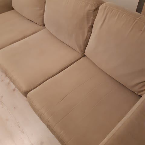 Sohva on juuri pesty (19.11) tekstiilipesurilla.