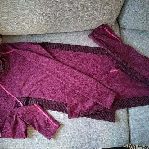 Sisus vähän pörröistä, joten lämpimämpi aluspaita. Kädensuissa peukaloreijät.