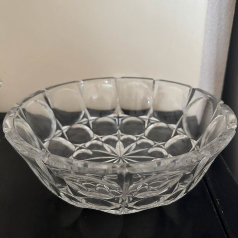 Kuvien mukainen kristallikulho. Korkeus 9,5 cm, leveys 24-11 cm. Nouto Joensuusta tai Jakokoskelta. Myös posti tai toridiili.