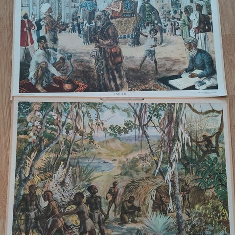 Myydään kaksi koulukäytössä ollutta "opetustaulua". Aiheina menneiden vuosikymmenten opit, tuskin enää koulussa saisi näyttääkään tällaisia stereotypioita:-) Tukevaa pahvia / kovalevyä, kooltaan noin 80x50 cm.