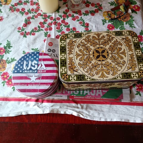 Myydään vanha ja hienokuntoinen peltirasia.