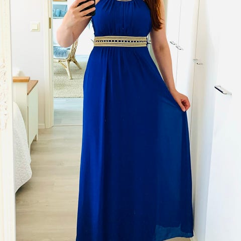 Kaunis pitkä juhlamekko + huivi. Mekon takaosa joustaa. Topatut kupit. Kerran käytetty. Mekko ostettu In Stock -liikkeestä.