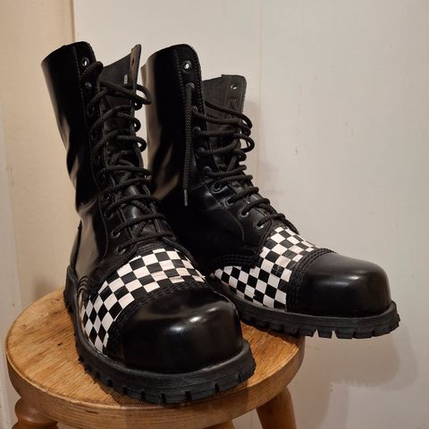 Mustat nahkaiset maiharit, original U.K. Rangers. Ostettu Lontoosta Shellys- liikkeestä v. 1996. Olleet 20v. käyttämättä ja kärjen liimaukset pettäneet. Kärjissä metallivahvikkeet.