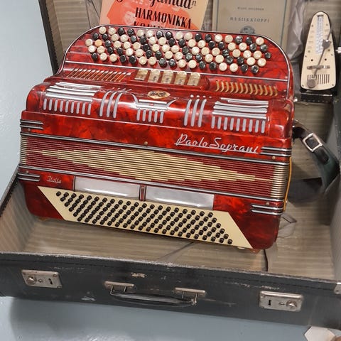 Ramses Atlas haitari, musta ja punainen värinä. Haitarissa mukana kuljetuskotelo. Sopii haitarin soittajille, jotka etsivät perinteistä soitinta.