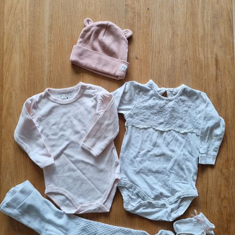 Suurin osa uudenveroisia ja lähes käyttämättömiä (ehditty vain kokeilla ja huomata, että olivat jääneet pieniksi). Kaikki hyväkuntoisia ja ehjiä, ei näkyviä tarhoja. Säilytyksen jäljiltä osa enemmän ja vähemmän ryppyisiä. :) Kaupan päälle kolmet sukat.