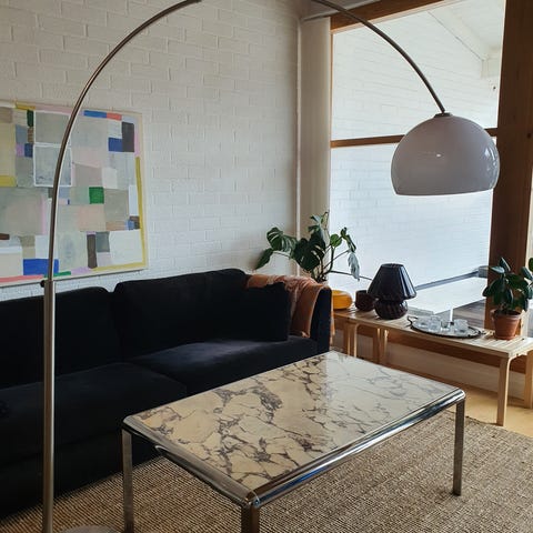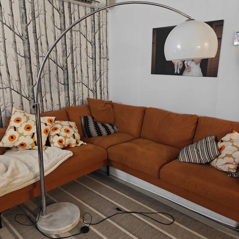 Kaunis ja kauniisti valaiseva upea kaarivalaisin, runko on hopean värinen. Painava jalusta, jolloin valaisin pysyy aina turvallisesti pystyssä.