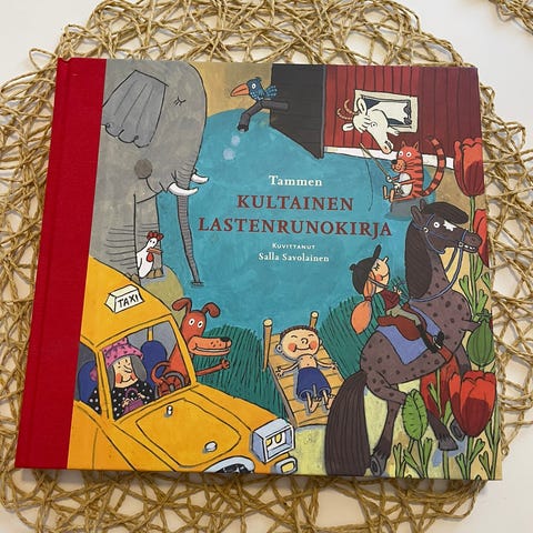 Kirja on jaettu eri osastoihin ja siinä on mukana monenlaisia runoja kaikenlaisista aiheista: lapsista, eläimistä, luonnosta, maaseudusta, kaupungista, mielikuvituksesta, vuodenajoista, juhlista, kavereista, sukulaisista. Lm.