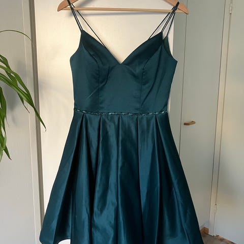 Tummansininen olkaimeton juhlamekko koko 36. Kerran käytetty. Piilovetoketju toisessa sivussa.