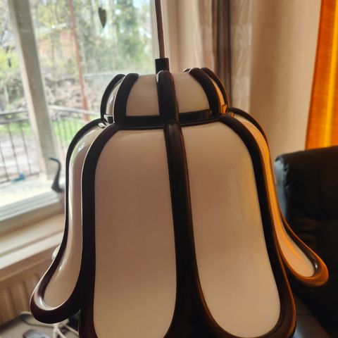 Tyylikäs kukkakuviolla koristeltu valaisin on kuin lumoava taideteos, joka kaipaa nyt uutta kotia levittääkseen ympärilleen ainutlaatuista tunnelmaa.