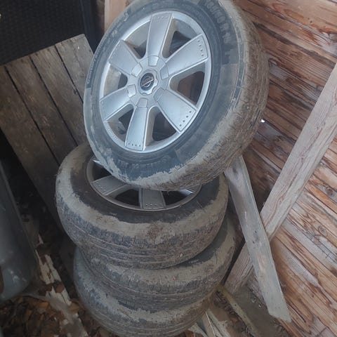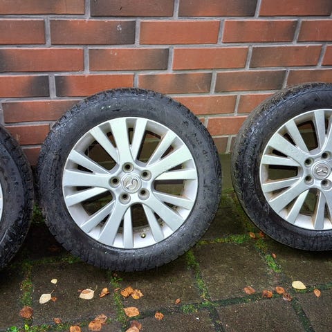 Renkaissa kulutuspintaa parisen milliä, tulevan kesäkauden pitäisi vielä ajaa renkailla. Yhdestä vanteesta puuttuu keskikuppi.