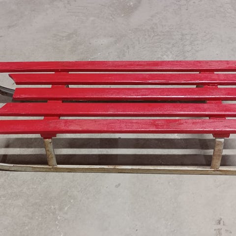 Lähes antiikkinen vanha kelkka. Vaikka koristeeksi. Sijaitsee Lopella.