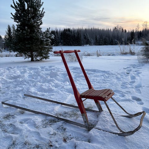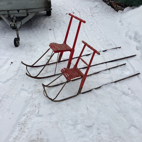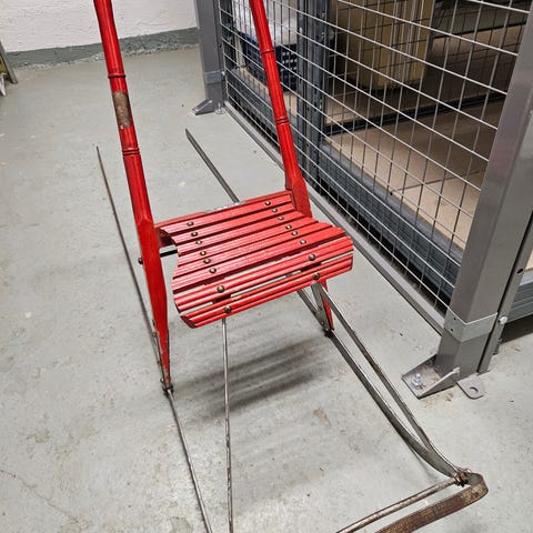 Kokoontaitettava kelkan pituus 160 cm. Käyttäjän pituus 100-130cm. Voidaan tuoda pääkaupunki seudulla 8€. Kelkan hinta 40€