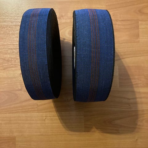 En tiedä mistä vehkeestä ovat. Nauhat ovat uudet ei niittejä. Nauhan mittoja leveys 5 cm kaarevuus 3,9cm kokonais pituus 21cm niittien jako 6,2 cm. Rahti tulee päälle.