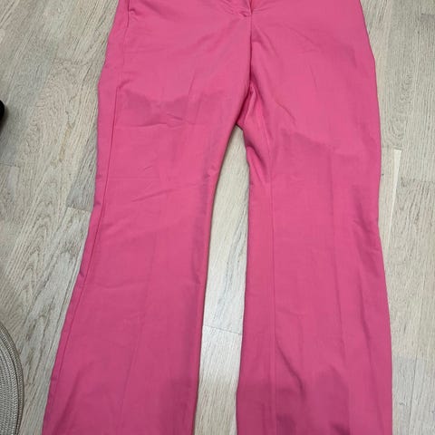 Kuvanmukaiset kesähousut, joissa on kuminauhavyötärö takana. Housut istuvat sen ansiosta erityisen hyvin. Housuja voi halutessaan tulla sovittamaan. Hinta 5€. Katso myös muut ilmoitukseni.