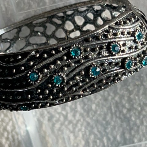 Vanha Art Deco filigraani rannerengas , synteettinen kivi, varmuusketjukin paikoillaan
