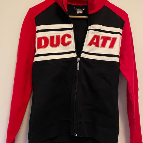 Uusi pitkähihainen Ducati paita, koko merkintä L, mutta totuus lähempänä S. Mitat: rinta kainalosta toiseen 44 cm, kauluksesta helmaan 44 cm, selkäpuoli pit 52 cm, hartiasta toiseen (suurin leveys) 52 cm.