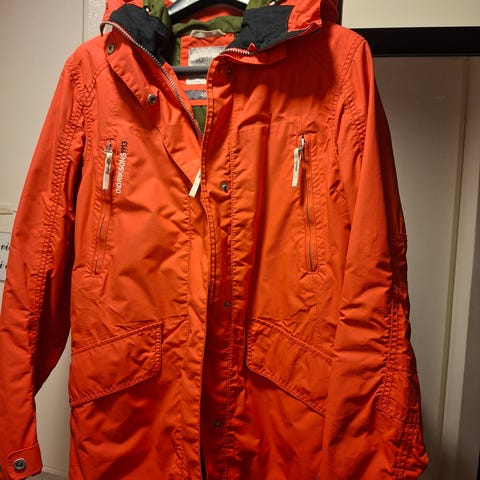 Didriksons ulkotakki, pitkä hupullinen malli. Hyvässä kunnossa. Koko 170 cm, vastaa XS/S kokoa.